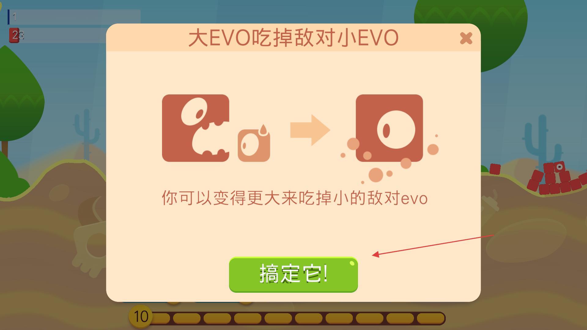 2、想让己方较大的EVO吞噬敌对的小型EVO,需先使自身EVO的体型增大,再去吞食那些敌对的小EVO,点击“搞定它”即可启动相关操作。