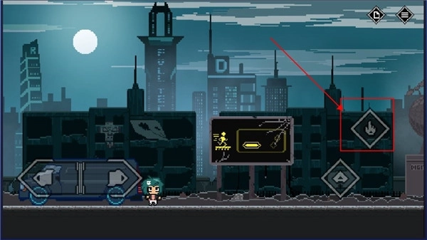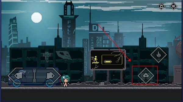 5、碰到禁止通行的大门时,不能直接靠近,得先找到开关并点击攻击;而这扇门则需要移动到红框标注的位置,同时按下跳跃键和攻击键才能打开。