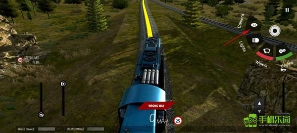 3、位于右上角的按钮,其功能分别对应火车的灯光模组、驾驶视角切换以及喇叭操作。