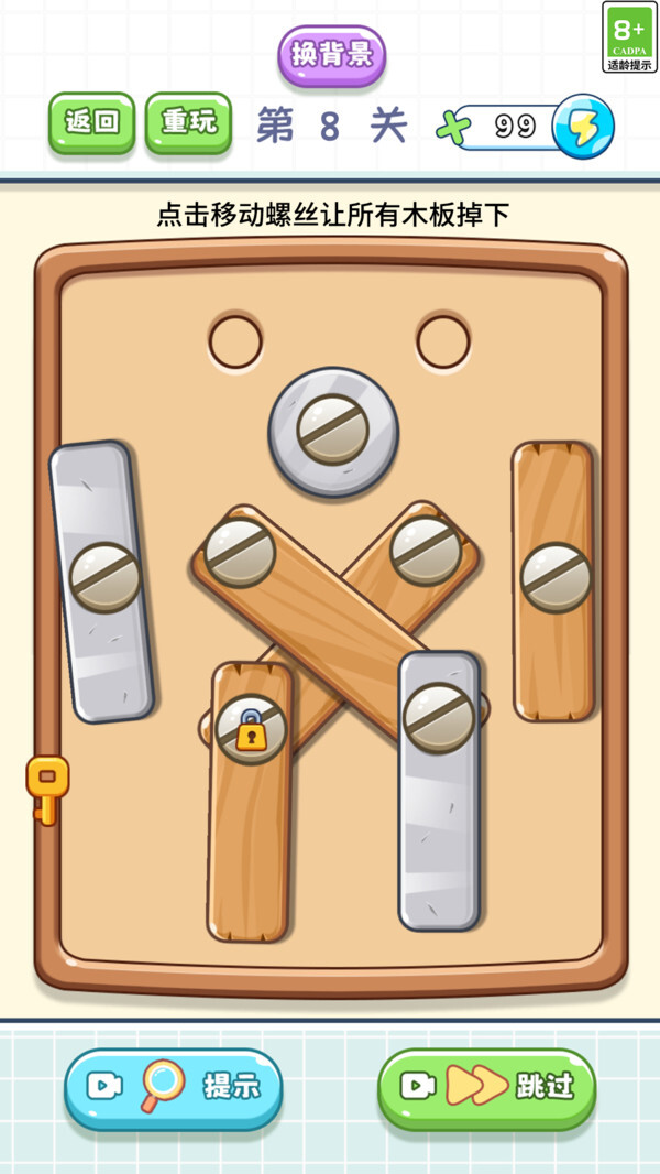 在游戏里,玩家得借助拧螺丝的方式把所有木块与铁板都拆卸下来,通过巧妙的操作来解开游戏中的谜题。
