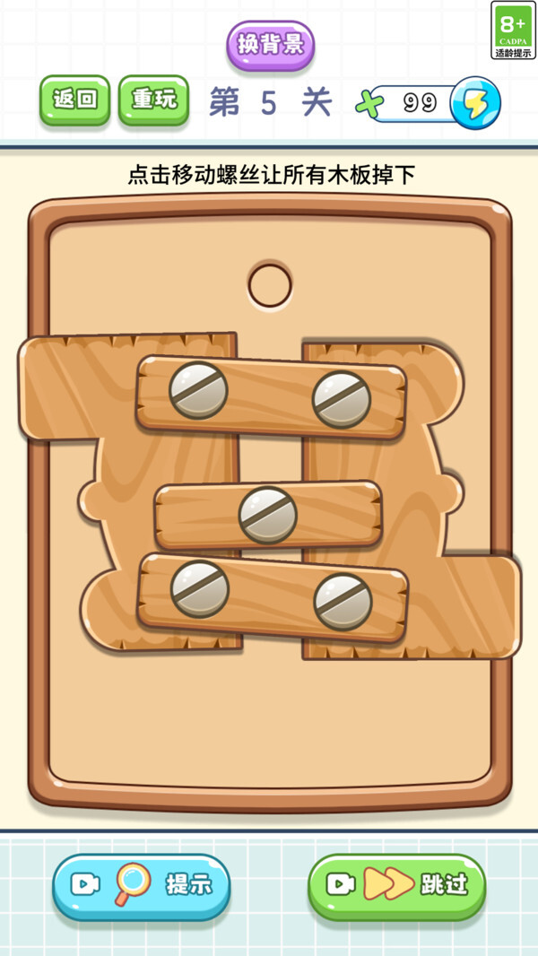 3. 玩家需在规定的步骤限制内,对打螺丝的顺序进行合理规划,方可顺利完成所有木块与铁板的拆除。