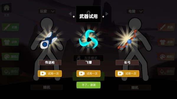 2、进入角色自定义界面,调整皮肤色调、搭配武器装备,塑造出独一无二的火柴人形象。