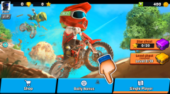 3、进入埃及章节后,点击【1】号关卡开启首次挑战,你需要操控摩托车手跨越各种地形,努力达成满星通关的目标。