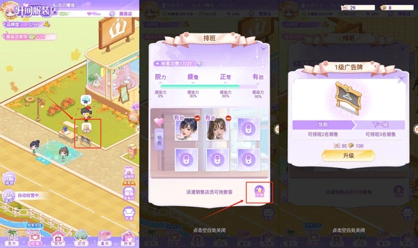 1、玩法十分简单,只需点击操作就能完成装修、进货、宣传等环节,非常容易上手。