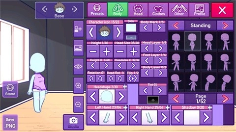 1、开始后,点击左侧的presets选项就能选择已制作完成的角色。