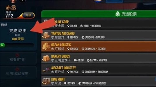 第一个任务是将同一种货物运输2次;第二个任务是运输四种不同的货物;第三个任务是行驶6000公里;第四个任务是赚取25000元;第五个任务是解锁新的国家。