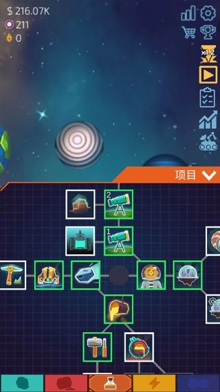 消耗一定资金可以发掘邻近星球,而解锁科研中的望远镜等级,能让你的观测视野变得更加辽阔。