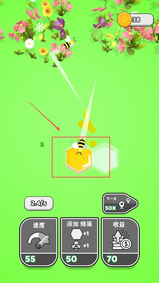 1、核心玩法为搭建蜂蜜生产工厂,在厂区内合理规划蜜蜂采蜜与蜂蜜加工的流程,使蜜蜂能够有条不紊地开展工作,从而产出大量蜂蜜。