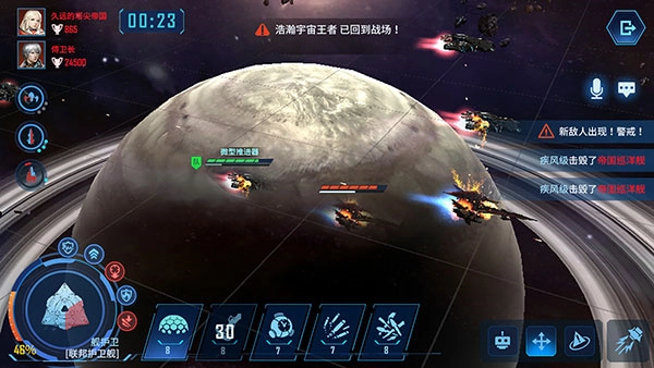 在广袤无垠的宇宙战场上,巡航导弹、综合护盾、超强鱼雷、战术主炮等各类酷炫技能相互配合,营造出极具沉浸感的战斗画面。战斗节奏紧凑,让你能利用零碎时间体验征服宇宙的畅快!