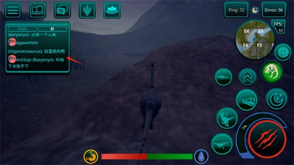 3、关于食物获取:若你选择的恐龙是掠食性的,就需要通过猎杀其他玩家的恐龙来获取肉食;要是选的是草食性恐龙,找食物会更简单,只需采集特定的蕨类植物,就能轻松获得充足的食物!地图上所有的湖泊和水库都能用来饮水。