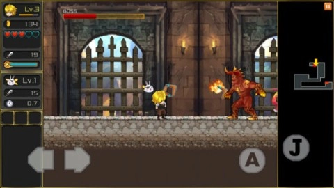 游戏的操作方式简单易懂,玩家仅需四个按键就能完成移动、跳跃与攻击的动作。其中,“A”键负责攻击,“J”键用于跳跃。在熟悉这些基础操作后,玩家需要巧妙组合不同动作,才能在遍布敌人的世界里继续前行,特别是面对那些在空中飞舞的敌人时,跳跃键的合理使用就显得格外关键。