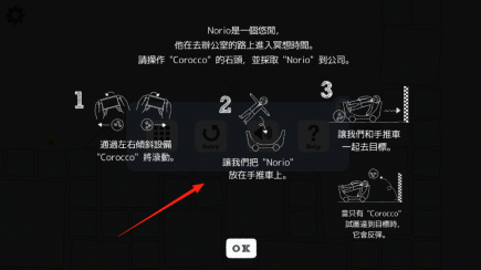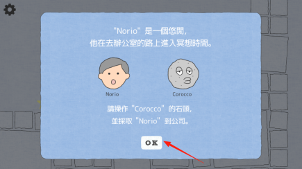 1、点击OK按钮即可启动游戏流程,玩家将操控名为Corocco的石头,目标是把Norio送往公司,以此开启关卡的核心运输任务。