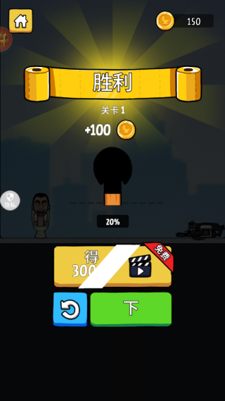 4、把所有监控人都成功清除掉就能通关,得到的金币和奖励可以用来解锁造型和能力各不相同的新马桶人,为接下来更有挑战性的关卡做准备。