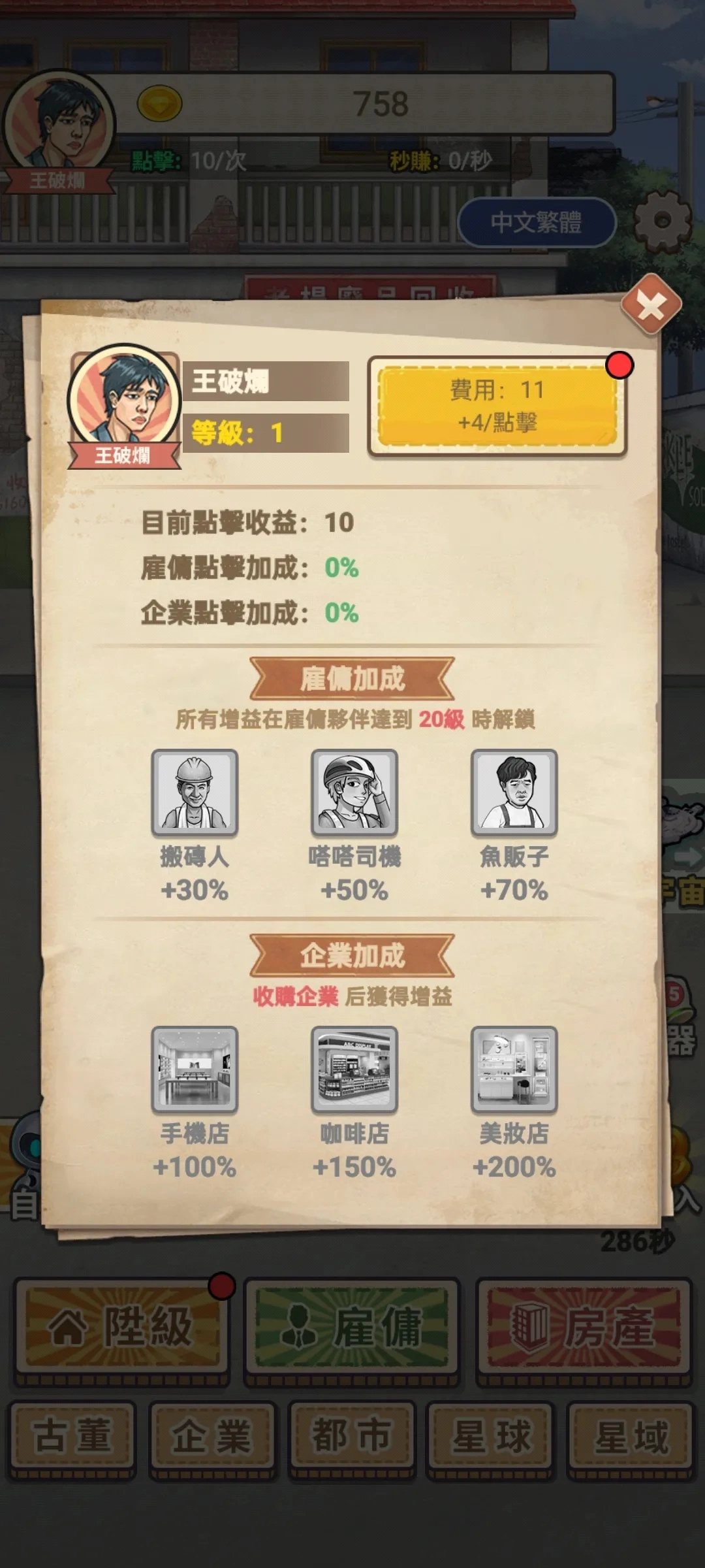 4、观察游戏的提示和任务,选择合适自己的经营项目。