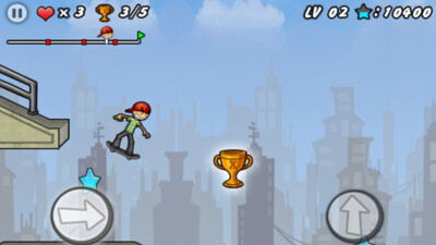 2、玩家需要控制一名滑板少年躲过障碍物;