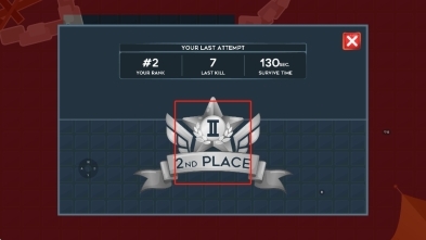 本局结束后,若查看排名为第2名,需记录存活时间130秒、最后击杀数7,随后点击关闭按钮,即可开启新一局挑战。