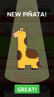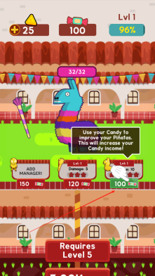 1、点击屏幕攻击皮纳塔,收集其掉落的糖果;当糖果收集到足够数量时,就能升级技能。按照提示完成升级后,击打皮纳塔获得的收益会变得更高。