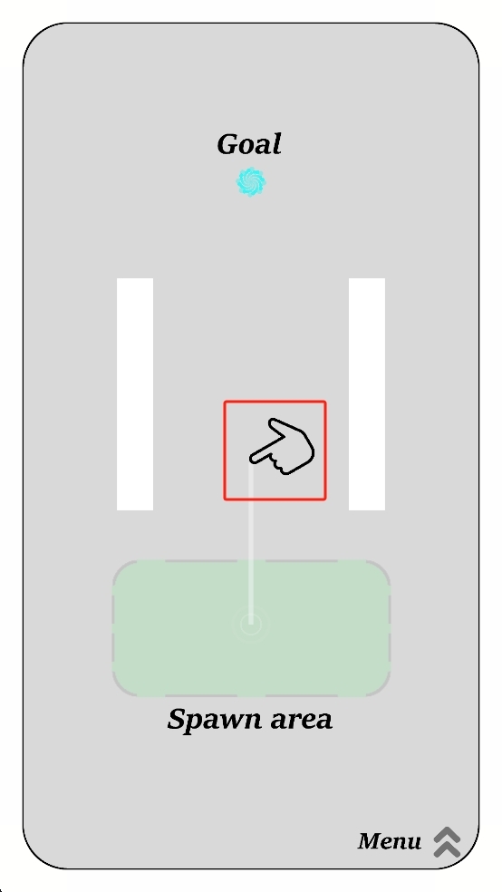 1、进入关卡后,在初始出生的区域长按屏幕,顺着指向目标的方向滑动手指,为小球规划出一条直线移动轨迹,引导它朝着目标方向前进。