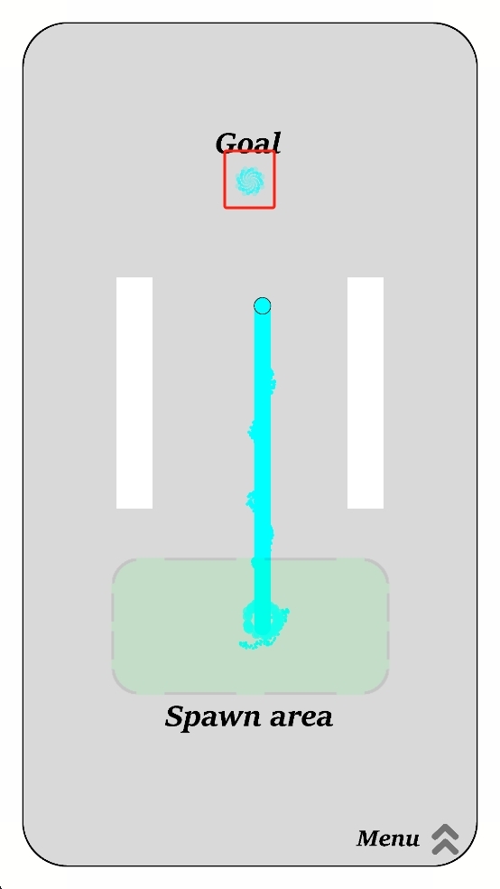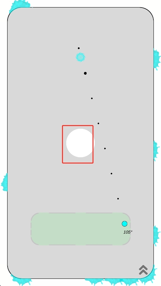 2、松开手指后,小球会按照规划好的轨迹移动,要保证轨迹能避开白色障碍物,准确到达上方的目标区域。