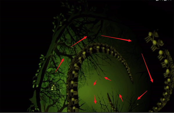 拐过两个弯后,你会看到一片金色的树叶,触碰它就能让你快速向前移动。