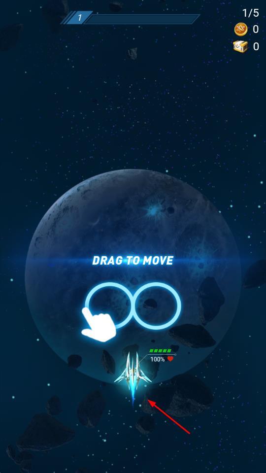 1、进入游戏后,在战机选择界面挑选你喜欢的战机,通过滑动屏幕来控制战机在初始太空场景里移动,点击射击按钮就能对迎面而来的敌人发起攻击。