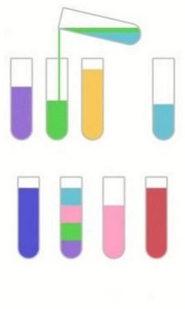 玩家可以随时往试管里倒水,不过要尽量避免被卡住。不用担心,游戏支持随时重新开始。你可以轻松控制不同的试管,将液体均匀分配。还能选择不同难度的关卡来挑战,免费解锁新关卡,在无限制的环境下,按照自己的节奏和想法尽情体验游戏。