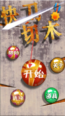 1、进入快刀切木游戏界面,点击开始按钮,开启游戏冒险挑战,进入游戏主场景。