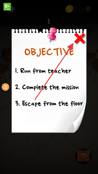 2、查看【OBJECTIVE】清单,把【Run from teacher(躲老师)、Complete the mission(完成任务)、Escape from the floor(逃离楼层)】这些目标梳理清楚,再对后续行动进行规划。