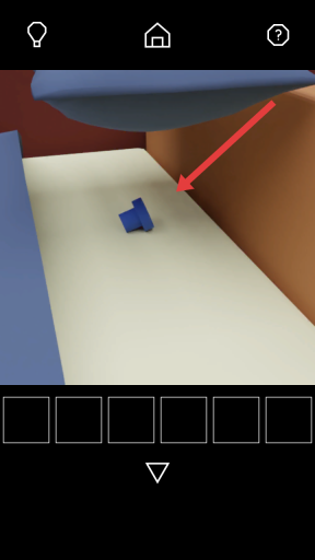 1、在进入房间的场景里,你需要点击场景中枕头下方藏着的蓝色小把手,把它收纳到下方的物品栏中。