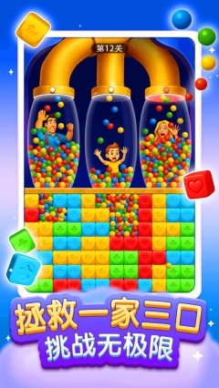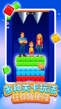 《拯救一家三口消消乐》正版安装版是一款别具一格的合作解谜游戏,故事围绕被困在神秘方块组成的巨型密室中的一家三口展开。父母与孩子需要同心协力,通过消除指定方块、机关来开启逃生通道,最终成功脱离险境。游戏融合了消除玩法、物理谜题与剧情叙事元素,十分考验玩家的逻辑思维能力。