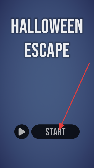 这是Halloween Escape游戏的启动界面,点击START按钮就能进入游戏,开启你的万圣节逃脱冒险之旅。