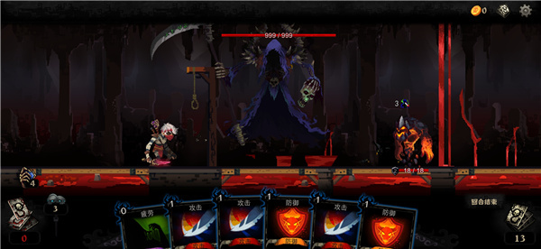 死神拥有999点血量,每个回合都会发动一次无差别全体攻击。其实击败死神也算是一种快速通关的途径,不过因为死神每回合都进行无差别攻击,所以偶尔会出现这样的情况:就算你具备击杀死神的实力,但和你战斗的怪物却先扛不住死神的攻击倒下了,结果你这边战斗获胜,死神也就跟着离场了。