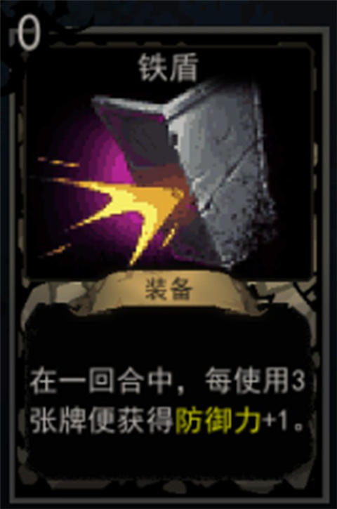 卡牌共有五种类型,分别是攻打、防备、技巧、装备和诅咒。使用卡牌时需要消耗能量,消耗的能量数量可以在左上角查看。卡牌上方的边框代表品德,而卡牌描述中黄色字体的部分是关键词,这些关键词具有特殊效果。