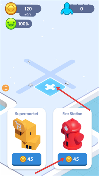 1、可以花费金币建造超市、消防站等各类不同的建筑,选择好想要的建筑后,把它放置在合适的蓝色区域内,以此来完善城市的整体布局。