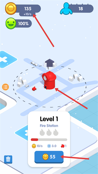 2、当消防站这类建筑建造完成后,我们可以消耗金币对其进行升级;升级后的建筑不仅会变得更高级,还能加快金币的获取速度。