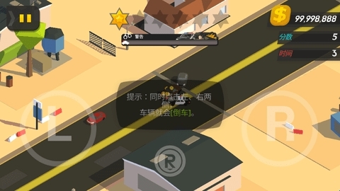 2、同时点击屏幕左右两边,车辆就会倒车,不然它会一直往前撞,这样很容易被警车围住抓起来。