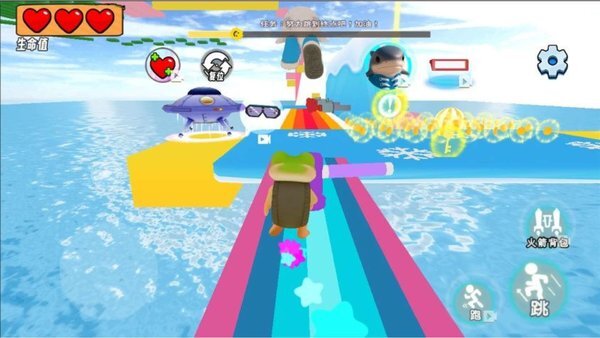 1、在屏幕上滑动来操控萌兽做出跳跃或滑铲动作,以此避开途中遇到的石头、树根、大坑等各类障碍。