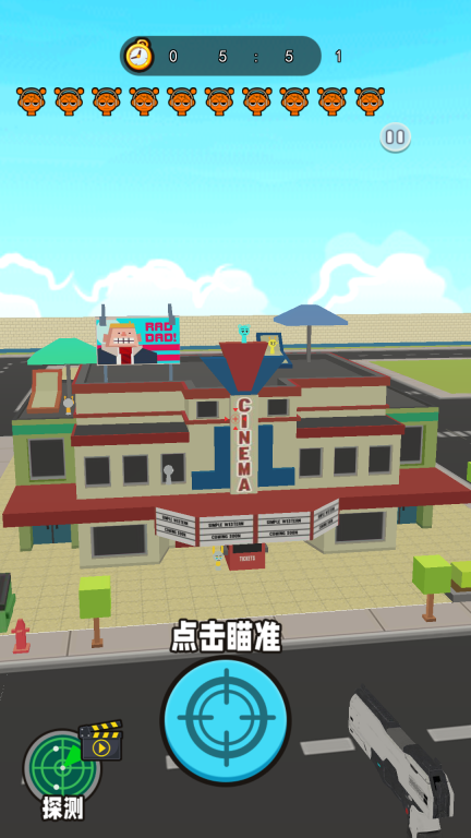 1、任务目标为头戴耳机的角色,这些角色分布在电影院等不同场景的各个位置,玩家需要在限定时间内完成对它们的击杀任务。