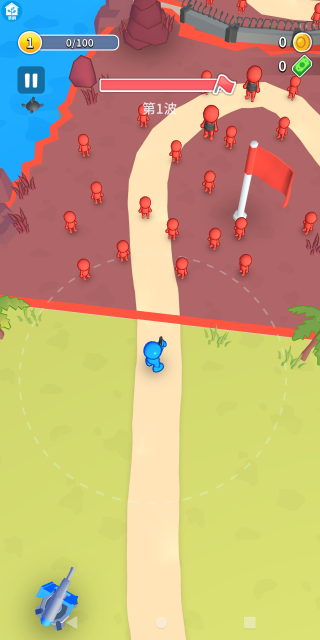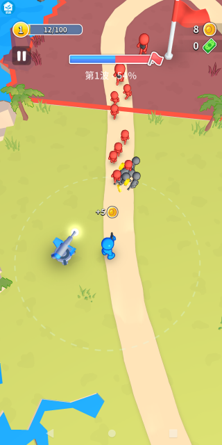 3. 如下面的图示所呈现的,战斗已然打响,你需要操控火柴人的行动;一旦敌人进入火柴人或是炮塔的攻击范围之内,它们便会自动对敌人发起攻击。