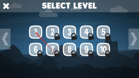 2、进入关卡选择界面后,点击数字“1”即可进入第一关,开启火柴人对决挑战,点击对应选项选择关卡。