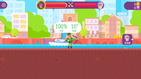 2. 玩家需用手指调整弓箭的射击角度与力度,可借助辅助线进行判断,一旦射击的角度和力度与辅助线完全重合,就能实现对对手的百分百命中。