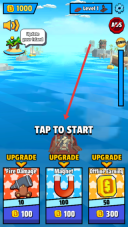 1、点击【TAP-TO-START】即可开启海上冒险之旅,出发前可以先对船只进行升级(比如Magnet、Fire-Damage这类功能),以此提升船只的战斗能力。