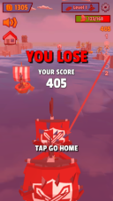 3、失败后,点击【TAP-GO-HOME】返回主页,利用得分(405)升级,重新挑战,提升游戏进度。