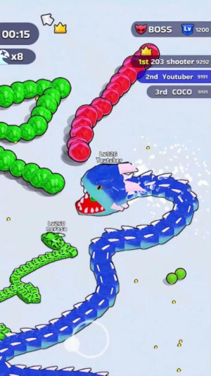 蛇块大作战为玩家带来紧张刺激的贪吃蛇竞技体验,你可以操控灵活的小蛇在战场上穿梭游走。通过不断吞噬光点来让自己的身躯变得更加庞大,还能巧妙地围堵对手,完成致命的吞噬操作。当你的体形逐渐增长时,还能解锁各种特殊技能,而达到千分关卡后,更有稀有的奖励等待你去获取。多阶段的成长系统让每一场对战都充满了变数,充分展现出策略与操作的完美结合,现在就开启属于你的蛇王争霸之路吧。