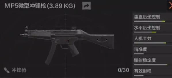 3、MP5:作为冲锋枪,MP5在射速与稳定性方面表现十分出色,中近距离作战时稳定性也很好。再加上获取难度和上手难度都不高,是非常值得推荐的武器。它对配件的要求不高,新手也能轻松压枪,只是伤害略低,远距离作战表现较差,但整体效果依然不错,十分推荐。