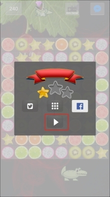 3、当钻石收集进度达到5/5时,通关界面便会出现,此时点击红框内的播放按钮,即可进入下一关,继续挑战难度更高的水果消除关卡。
