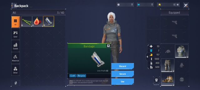 在这个危机四伏的世界中,玩家得时刻留意角色的饥饿状态与受伤情况,及时运用背包里的资源来维持生存。