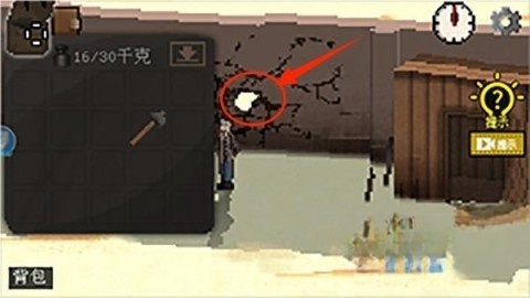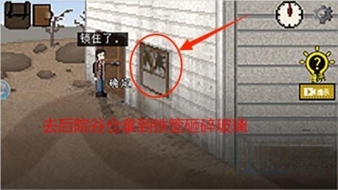 3、到围墙边的木屋里找到铁锤,用它砸开墙上的洞口,就能顺利通过了。