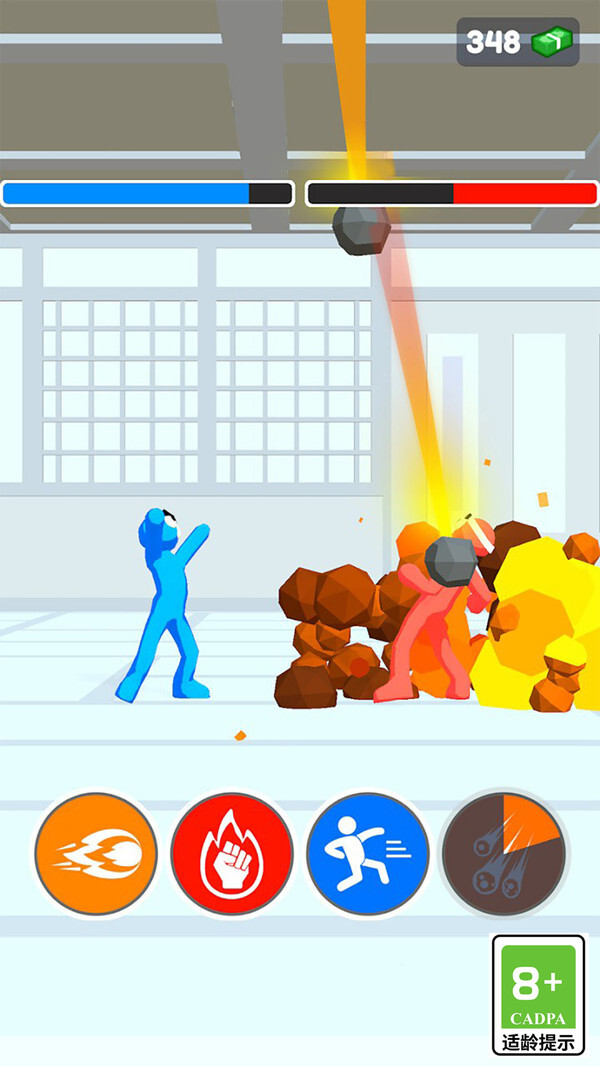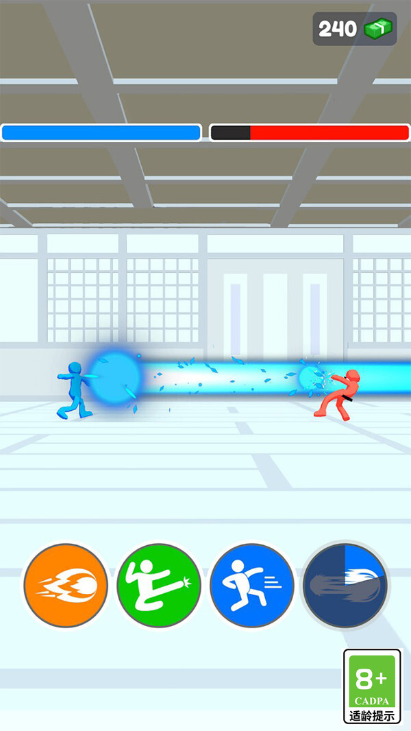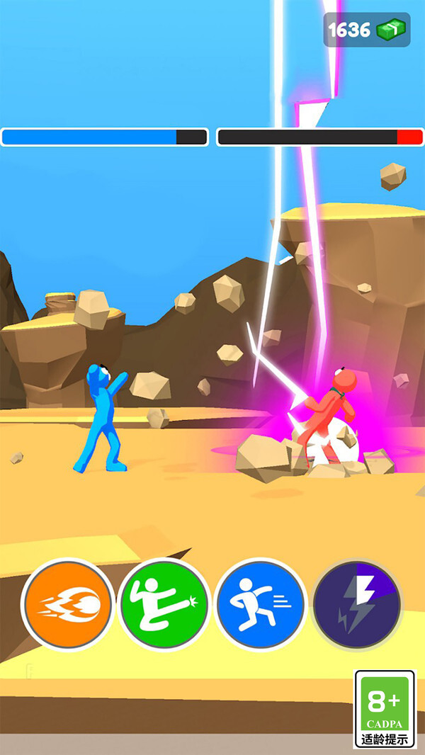 这是一款动作格斗对战类游戏,玩家可以挑选心仪的角色开启关卡挑战,与敌人进行紧张刺激的对决。游戏内设有坦克、旋风腿、狂战士、忍者、魔法师、武术家等丰富多样的职业选项,每个职业都配备了4个作用各不相同的技能,涵盖了近战攻击、远程输出、灵活闪躲、坚实防御,以及威力巨大、能造成山崩地裂效果的强力招式。这些强力招式里,既包含雷电、陨石这类模拟自然灾害的技能,也有龟派气功这样广受欢迎的经典招式。