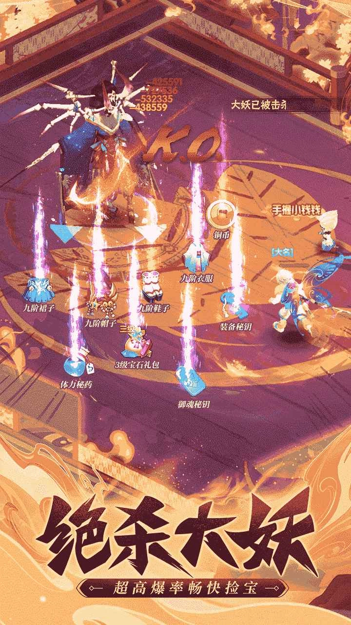 2、简化操作即可释放必杀技,击败高战力大妖,获取珍贵碎片和高级幻饰材料。